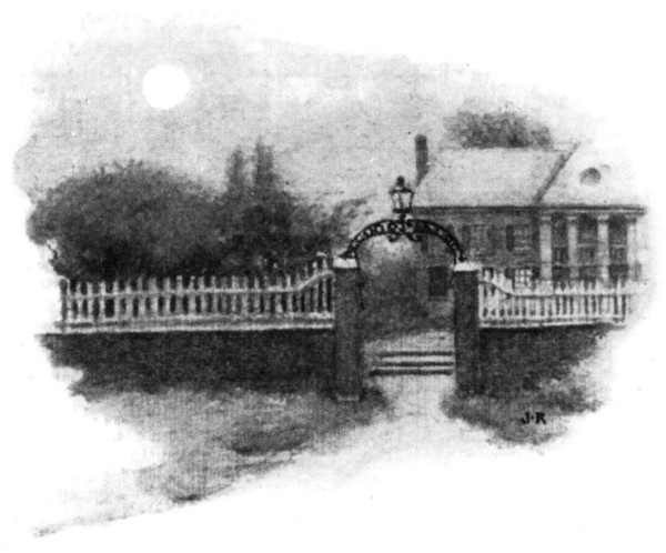 It was the ringing of an evening bell tolled in a nearby hamlet which welcomed them into the beautiful roadway leading to Penn Rhyn. That roadway is little changed to-day, but the house itself gazes upon its visitors in new attire. Probably there is no[36] mansion in Pennsylvania that has had a more interesting history than this pile erected early in the eighteenth century by a pompous Bickley from Buckinghamshire. On the estate is the family tomb guarding the dust of many generations of Bickleys—young Bickleys who faded before their perfect bloom, old Bickleys who were glad enough to lay down the thread of life and rest their tired bones on that moss-grown bank. A long procession of men and women bearing a name that they all were proud of, with but one exception. He, Robert Bickley, cursed his name and his father one Christmas night and then threw himself into the Delaware because the stern gentleman had told him never to darken his door in life, owing to an unfortunate marriage. Now, every Christmas eve it is said that he rises from the river, gaunt and slimy, and steals up the path to the house. Sometimes a belated wanderer sees him standing in the moonlight before the great hall door of[37] Penn Rhyn, moaning over his unhappy fate. Again he is heard in the corridors tapping with ghostly fingers at each chamber door for admittance. Promptly on the stroke of twelve weird, unearthly cries fill the house. Then every wakeful sleeper cuddles down low under the bedclothes. Perhaps it is only the wind playing about the chimneys, but the superstitious would have us believe that it is the shade of poor Robert Bickley calling to his young wife and cursing his fate and name.