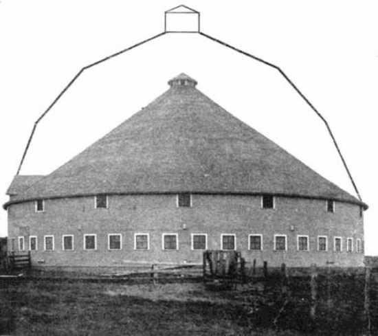 Fig. 30. Barn No. 4. 90 feet in diameter; One of the few dairy barns with