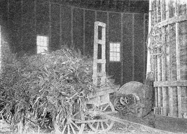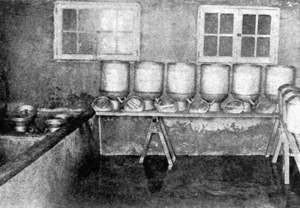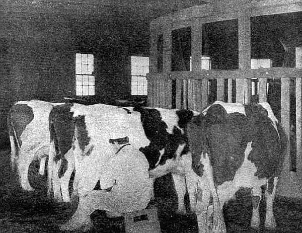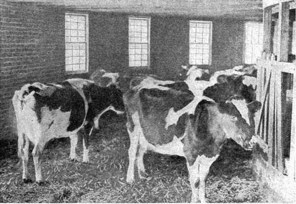 Fig. 5. In cow stable, showing silo and feed alley in center of