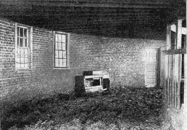 Fig. 32. Interior of Barn No. 4, showing stalls and feed alley.