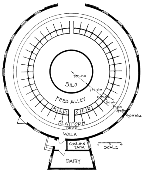 - The round dairy barn offers greater convenience in storing, handling and distributing the feed.Page 5.