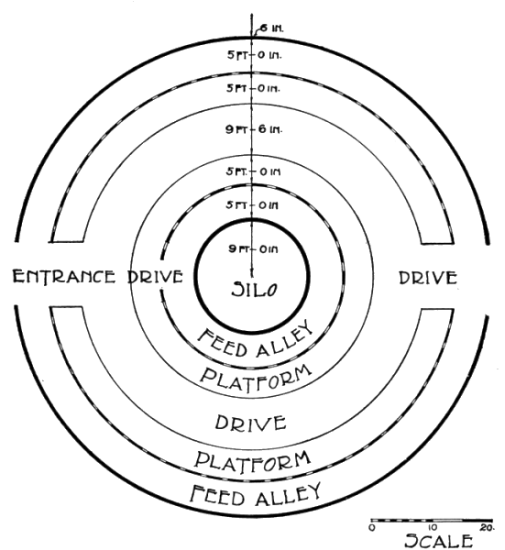 in diameter and 71 feet high, with a capacity for 620 tons of silage,