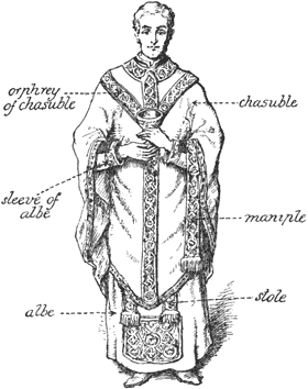 | The surplice and “the cloth”—The civil origin of vestments—Fine vestments—Processional vestments, so called—Nuns’ dress—The choker | 184[xiv] |