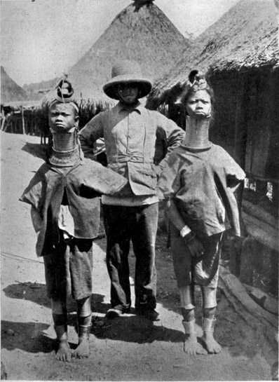 - — Padaung, metal collars of, 114; see Plate VI, facing p. 114