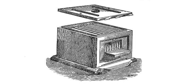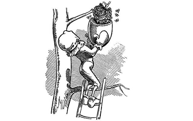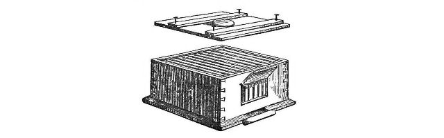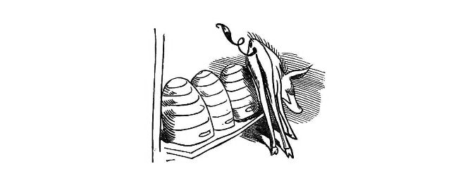 "A Honey Thief, ill may he thrive."—Page 55.—Every Bee keeper will echo this wish. I know no sight more piteous than an apiary the night after it has been plundered. Light Hives upset, and lying, with the combs all broken, on the ground. The Bees crawling about in wild confusion around their violated homes, lately so neat, and now the very picture of desolation. In vain they attempt to repair the damage which the spoiler's hand has created; whilst the stands where the heavy stocks stood the evening before, are one and all tenantless. Many devices to protect Hives from robbers have been tried. Wooden boxes are tightly screwed to the bottom board from below, whilst the bottom board itself is strongly bolted to the stand. This will indeed protect a hive from anything but a powerful crow bar. But the remedy is worse than the disease, as it prevents your ever changing or cleaning the bottom board, and is, in many ways, inconvenient. The best preservative I can think of is to have a savage dog, savage to all but his master, with a strong chain, not fastened to his kennel, but ending in an iron ring, which can slide along a small pole placed horizontally about a foot from the ground in front of the Hives. I have seen this mode of defence adopted in Germany for the protection of the valuable Leech ponds, which are there fattened for the market. It answers for the defence of Leeches, and if so, why not for Bees.