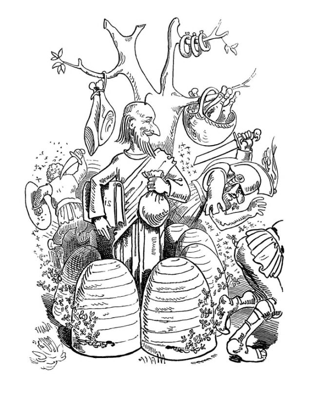 I happened last year to be at the Cologne Station, waiting for the train, and employed my spare time in looking over the book stall for something to read on my way to Aix-la-Chapelle. The stall was covered with books about the late War. I had returned from a visit to the Battle Fields of 1870, and was sick of the subject. I wanted something of a more peaceful nature, and I was turning away, without making a purchase, when a book met my eye entitled Schnurrdiburr. What that might mean I knew not, but the second title, oder die Bienen, was intelligible, and had attraction enough for me. I opened it, and saw it was profusely illustrated with very comical cuts. I paid my Thaler and carried away my prize.