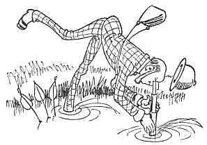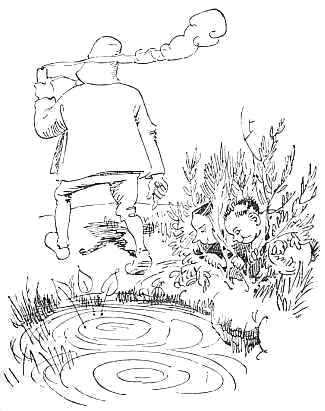 Here he pitched into the pond,