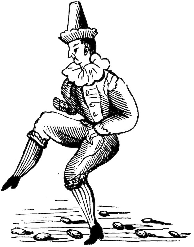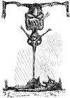 Cover the palm with sand, ashes, or any non-conductor, and calmly put the live coals on it. Which ancient “sell” will be found in the first German mediæval play, entitled “The Burning Iron,” by Hans Sachs, “performed 17for the first time in Nuremberg in the year 1531.” A peasant woman suspects her husband of some crime, and she arranges with her mother that he must pass under the ordeal of the “burning iron”—that is, a piece of iron made red-hot must be picked up with his bare hand, and carried round the room. If his hand remain unscathed, he is innocent; if he be burnt, then he is guilty. The husband promises to undergo the ordeal; but before doing so, manages to place, unseen by his wife, a flat piece of wood upon the hollow of his hand, and with this deception he passes through the ordeal successfully. Mr. Hanky Panky believes this gentleman to have been his “long-lost brother.”