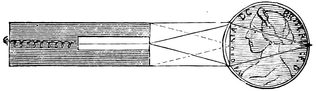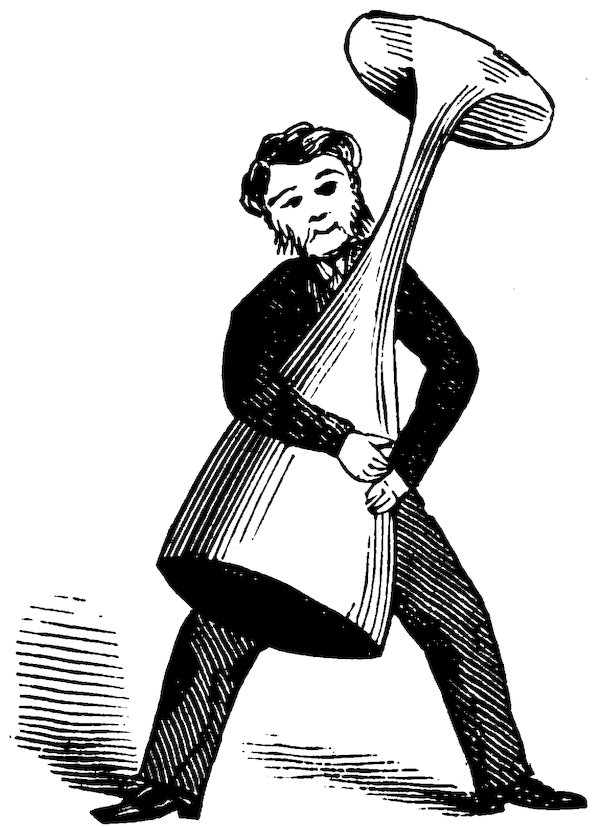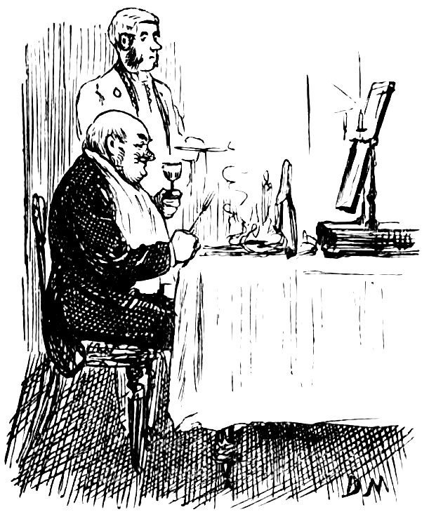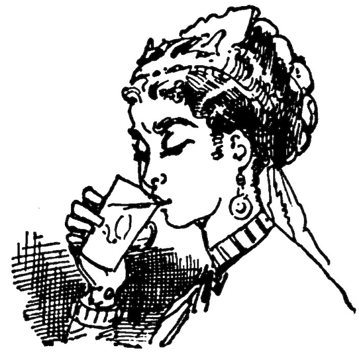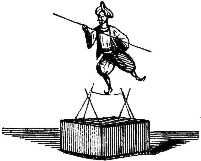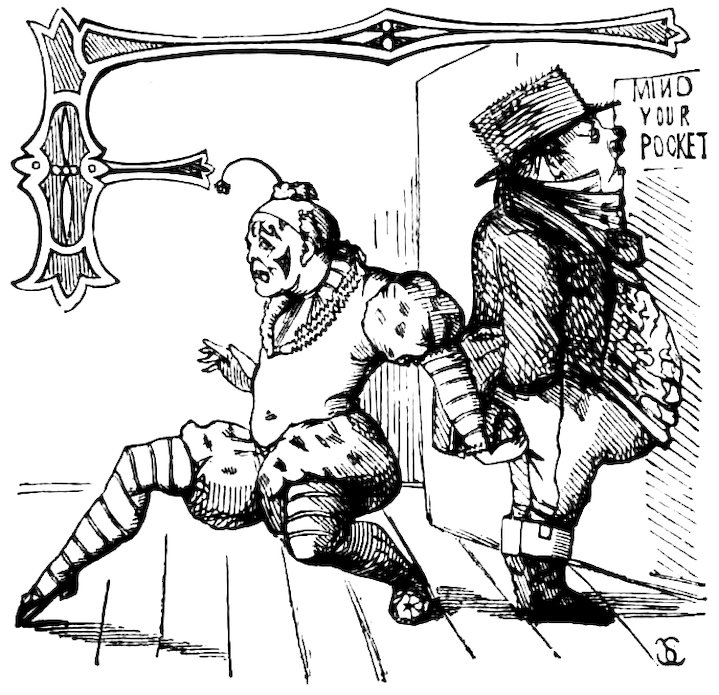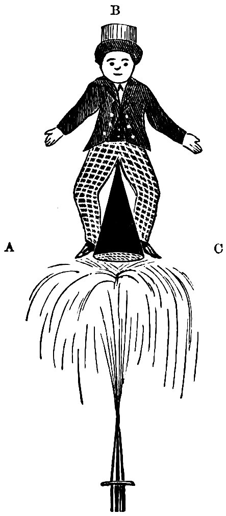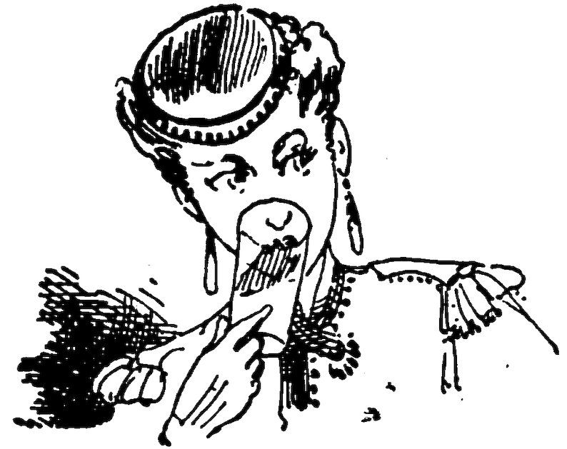 Nevertheless, Mr. Panky, with his usual assurance, announces that—without his approaching—he has the power to attract the coin to him, and, in truth, he suddenly holds it up in plain sight. The person takes away the handkerchief, and is even more astounded than the most impressionable amongst the spectators, to see nothing but the water in the glass—of which the magician relieves him by swallowing it.