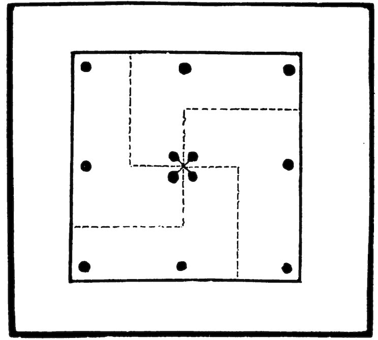 Having drawn six-straight lines, by adding five more, as in figure 3, only Nine is seen.