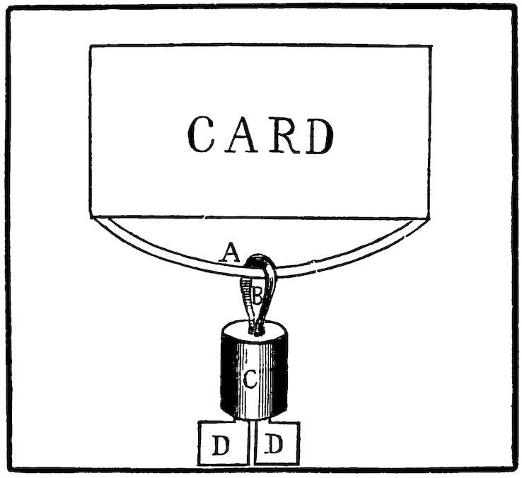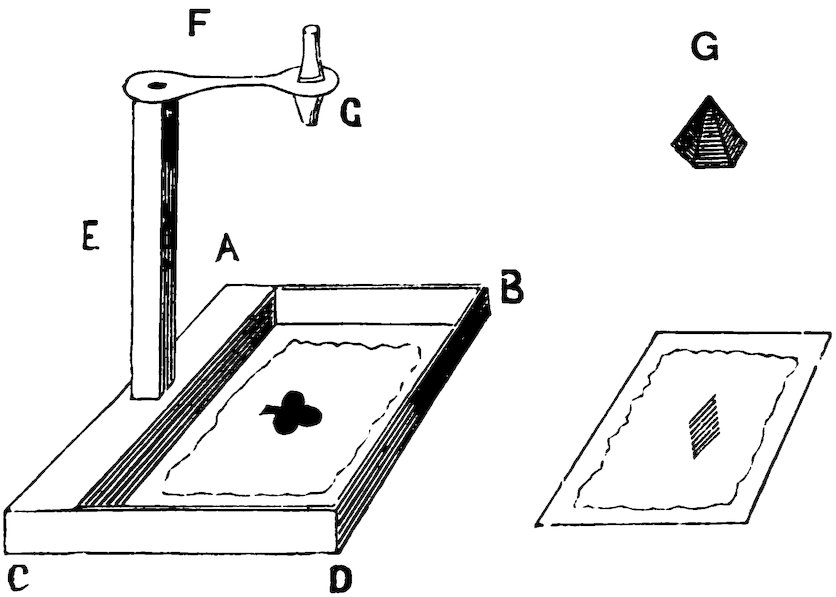 21The person is notified that Mr. Panky will count three, at the last of which numbers he is to let the piece fall into the glass, as the sound will betoken.