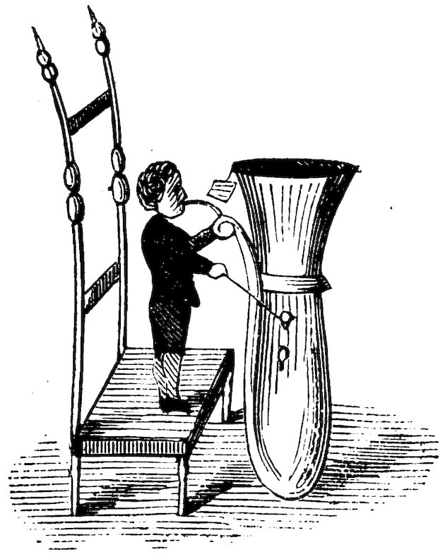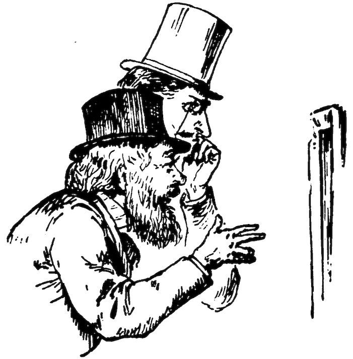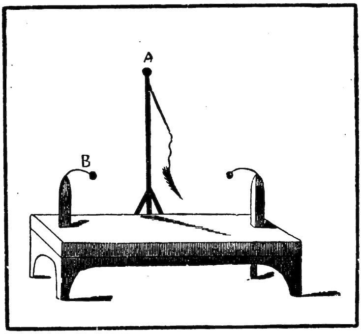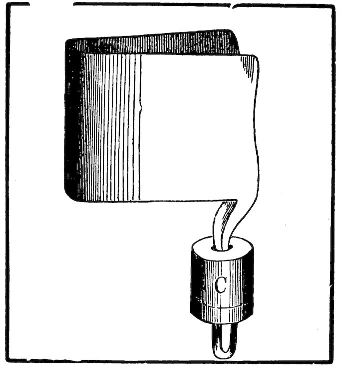 Herr Professor Bobine von Rhumkorff amuses little children by holding up his hand, with the thumb and finger thus posed:—