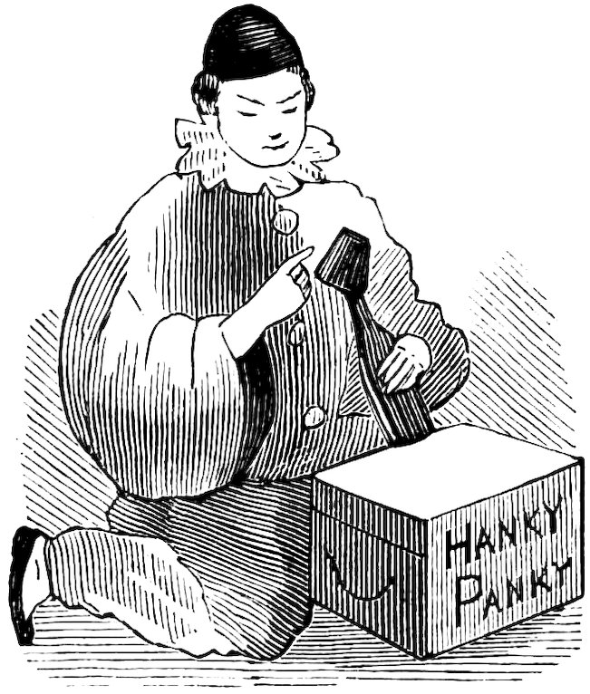 The great and deserved success of “The Secret Out; or, One Thousand Tricks in Drawing-Room or White Magic,” edited by W. H. Cremer, Jun., of Regentstreet, has suggested an entirely new Edition of the same Author’s world-famous “Hanky Panky: Very Easy Tricks and Very Difficult Tricks, Diversions with Dice, Conjuring with Cards, Jugglery with and without Assistants, Gamblers’ Deceptions Exposed.” The Publisher has again secured the services of Mr. Cremer—the gentleman whose wonderful display of the Toys of the World attracted so much notice in the recent International Exhibition—and an eminently entertaining, but, at the same time, thoroughly practical, book is now before the reader.