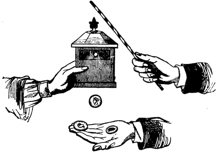 In our former works have been given revelations by means of which the disappearance of coins can be accomplished. The present act of prestidigitation is quite new, and never before discovered by magicians to their audiences.