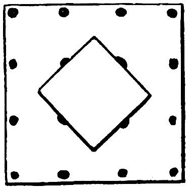 He then places the coin in the centre of the handkerchief, and puts it over the mouth of the glass, where the volunteer holds it by its edge through the silk, so that the pendent corners hide the coin and glass.