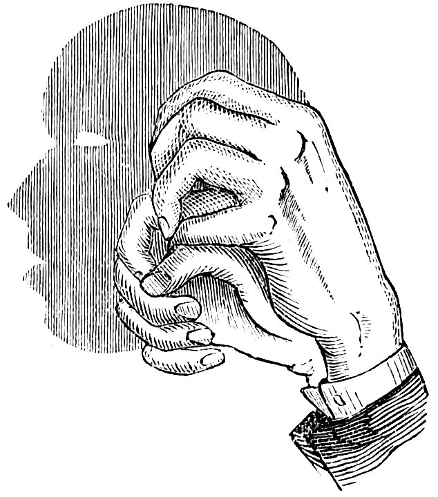 Fold each finger over the next, the forefinger undermost upon the thumb, and say: