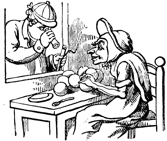 ⁂ These are the designs which Mr. Ruskin has praised so highly, placing them far above all Cruikshank’s other works of a similar character. So rare had the original book (published in 1823–1826) become, that £5 to £6 per copy was an ordinary price.