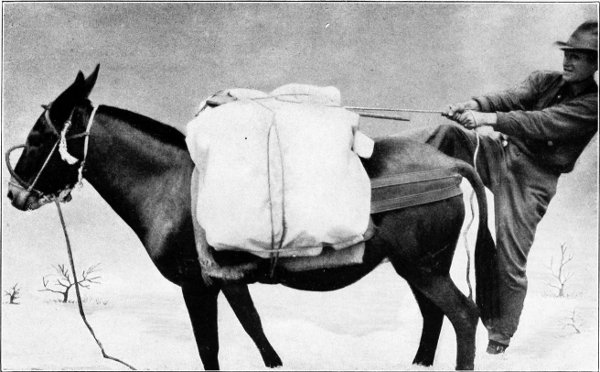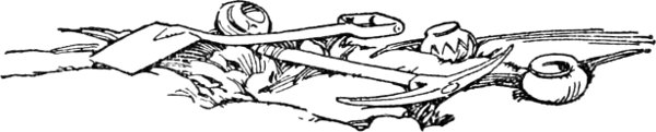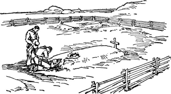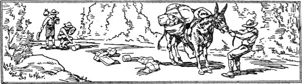 Then the tinkle of a sheep bell reached their ears. They spurred their tired horses into a trot and soon reached the spot where once stood the camp tent. In the dim light they saw a freshly dug hole with a tent lying beside it, upon which was piled a miscellaneous assortment of food and camping utensils, mutely telling the story of how the camp outfit had been saved.