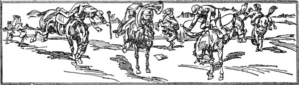 The more they thought about it the madder they got. Revenge they must have. What its form, they scarcely knew, nor cared. Without more talk, they all reloaded[Pg 209] the weapons from their well-filled belts and turned their horses' heads toward town, speculating as they rode along as to just what they would do to show the town of Horse Head the danger of monkeying with a cow puncher's weapons. As they rode, they hatched up a plan, suggested from the fertile brain of Mac, the horse-wrangler, which, they thought, if successfully carried out, would give them the requisite amount of satisfaction for their wounded dignity.