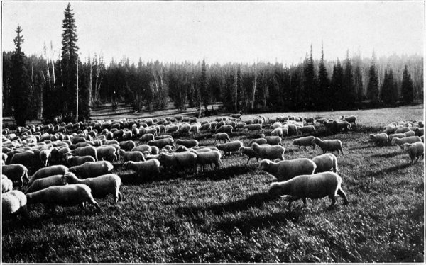 He was very tired and his almost bare feet were badly cut and burned, causing him to stop and rest frequently, but he finally reached the granite ledge, and there found[Pg 204] the sheep, with the dog watching their every movement, and woe unto the ewe or venturesome lamb that attempted to wander too far into the valley, for he was at its heels in a minute to drive it back.