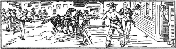 Poor Chinese Louie and his assistant lost no time in making themselves scarce; and, after it got too dark, for want of lamp-light, to see to shoot anything more, the now hilarious punchers swaggered out to their ponies, standing quietly at the "snorting post" in front of the restaurant, and with a parting volley up the main street toward the "Bucket of Blood," rode furiously out of town.