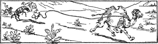 The two cowboys rode slowly down the gentle slope toward the cow, which watched them eagerly, but with the cunning of the brute made no sign or motion to show where her baby was hidden. When, however, one of the boys played the time-worn trick on her by barking like a dog, it was too much for her peace of mind. With a mad bellow of defiance she raced toward the spot where the little fellow was hidden, exactly as the boys knew she would.