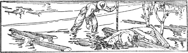 Luckily for the two unfortunates, right below the place from which they were lowered, instead of the river running in its regular channel, there was a great eddy, or swirl, where the water had cut a deep hole in the sandy river bed. Here the water was quite deep and had but little movement, except a slow circling motion. In this they swung at anchor, from midnight until broad daylight. The water caused the ropes to shrink and draw until they suffered a great deal where they cut into their wrists, making it an utter impossibility for them to untie the knots, although they worked diligently trying to get them loose in some way. The water was cold and their limbs soon became so numb that they could hardly move either hands or legs. They wore their voices out calling for help.
