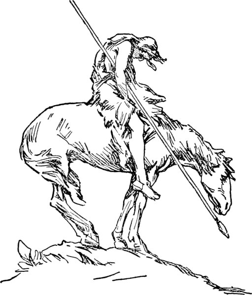 So our youngster found himself being followed up by a great fierce-looking man mounted on a small wiry "Paint" pony that kept right at his mother's heels, no matter which way she turned or twisted.
