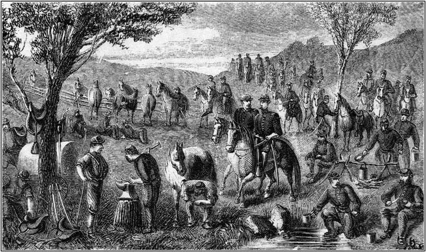 1863.—General Hooker assumes Command of the Army of the Potomac.—Demoralization.—Reorganization.—A Cavalry Corps.—General George D. Stoneman in Command.—Death of Sergeant May.—Forests of the Old Dominion.—The Cavalryman and his Faithful Horse.—Scenes in Winter Quarters.—Kilpatrick.—His Character.—Qualifications of the True Soldier.—A New Horse.—A Mulish Mule.—Kilpatrick's Colored Servants in Trouble.—Terrific Hail-Storm.—Major E. F. Cooke Honored.—Colonel Clarence Buel. |