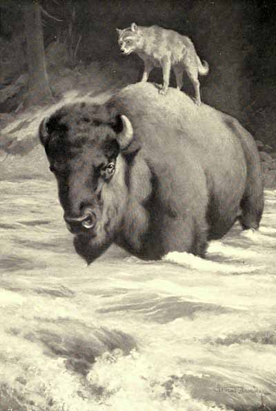 "Circle, Brothers, circle," called the big Wolf, as he swerved to the right, seeking to turn the flank of the Cow line. Like trained soldiers the Buffalo crescent swung as the Wolves swung, Shag always a little in front. With an angry snarl the Leader dashed at the Buffalo; his two Sons were at his shoulder.