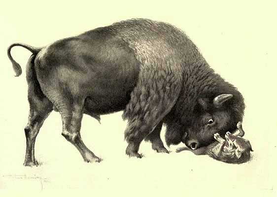 "Yes, three Indians," answered the Dog-Wolf. "The same old Hunt. I've watched it many a time from behind the runners; I know every trick of these slayers. Now the Run surely begins; let us close up, Shag, for the hunters will have no eyes for such as us; their hearts are full of the killing of many Buffalo. Also, there will be much meat warm to a cold stomach to-night;" and he licked his chops greedily.