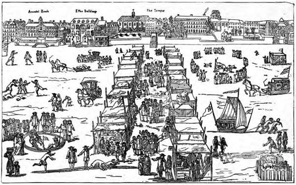 “This year a frost enabled the Londoners to carry on all manner of sports and trades upon the river.” “Old and New London,” by E. Walford, M.A., v 3, p. 312.