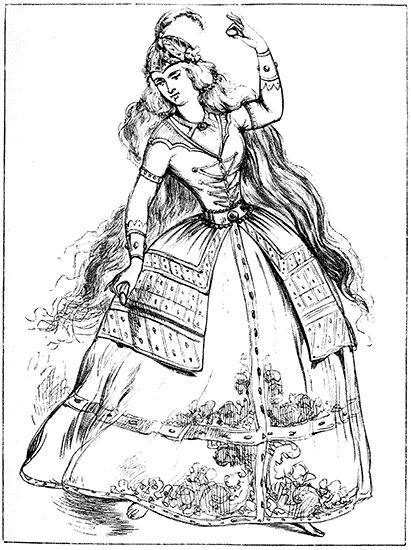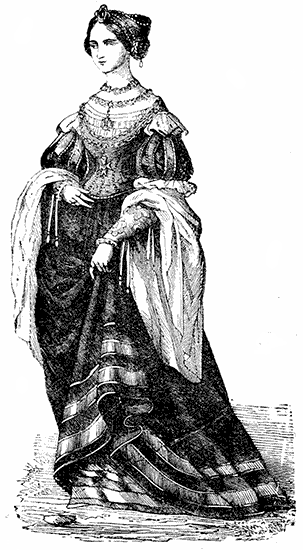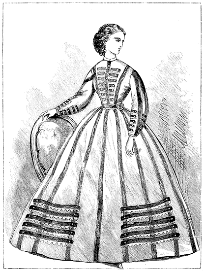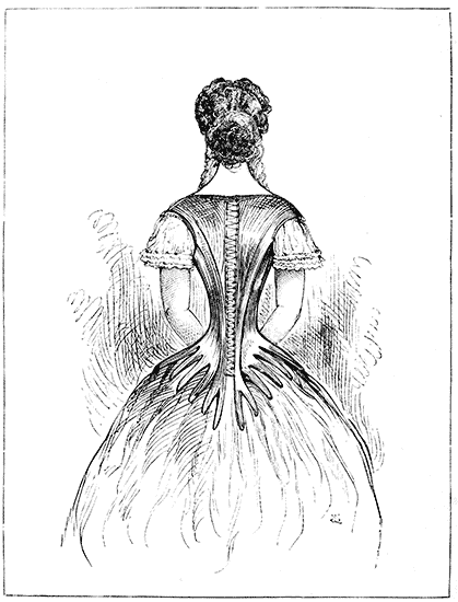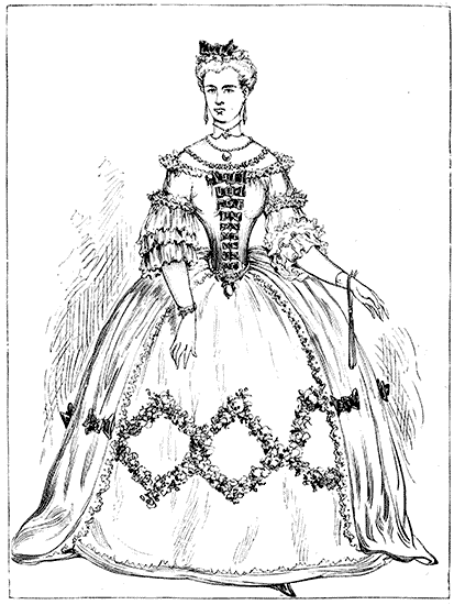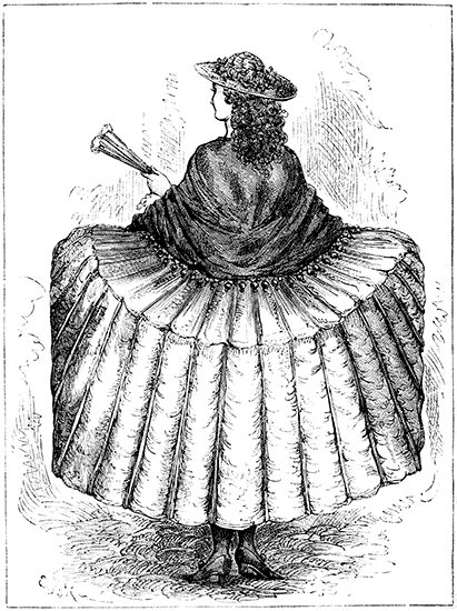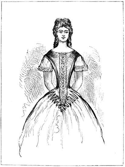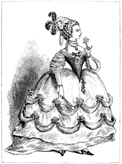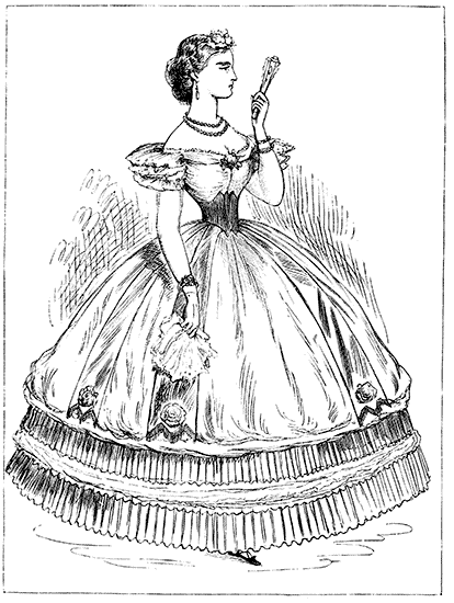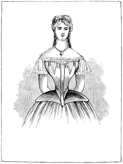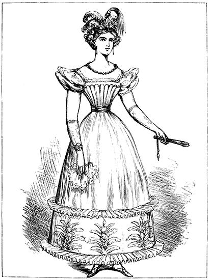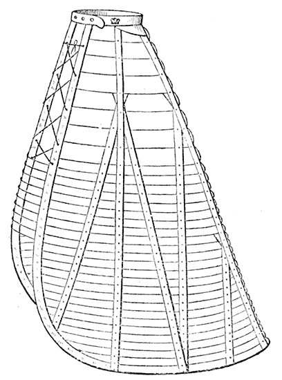 The Crinoline is too closely associated with the Corset and with the mutable modes affected by ladies, from season to season, to be omitted from any volume which treats of Fashion. The same facts, indeed, may be stated of both the Crinoline and the Corset. Both appear to be equally indispensable to the woman of the present period. To make them serve the purposes of increased cleanliness, comfort, and grace, not only without injury to the health, but with positive and admitted advantage to the physique—these are the problems to be solved by those whose business it is to minister to the ever-changing taste and fashion of the day.