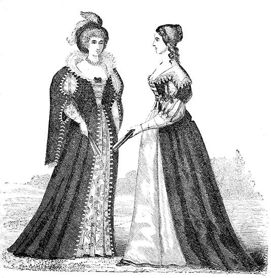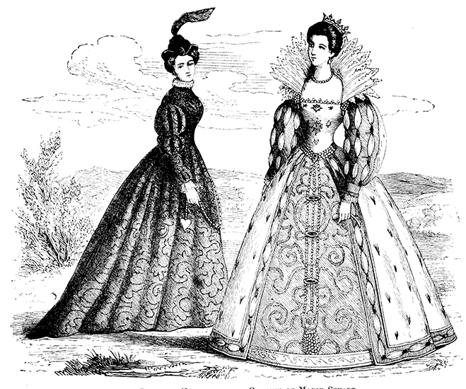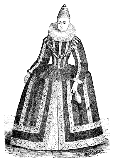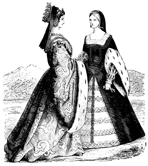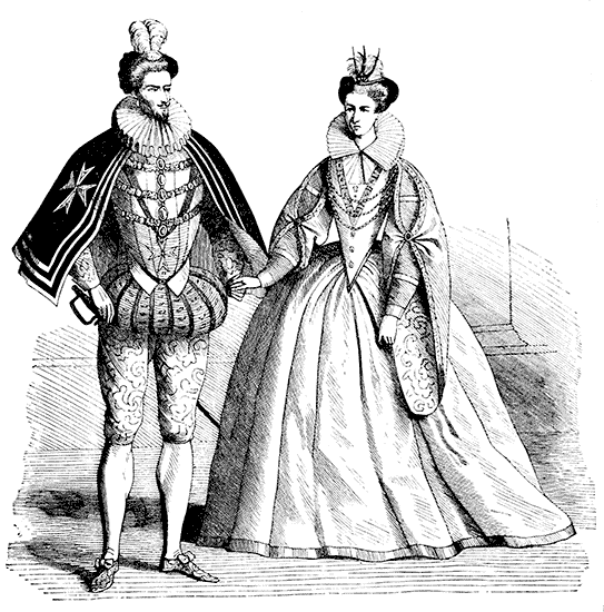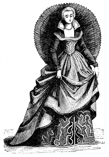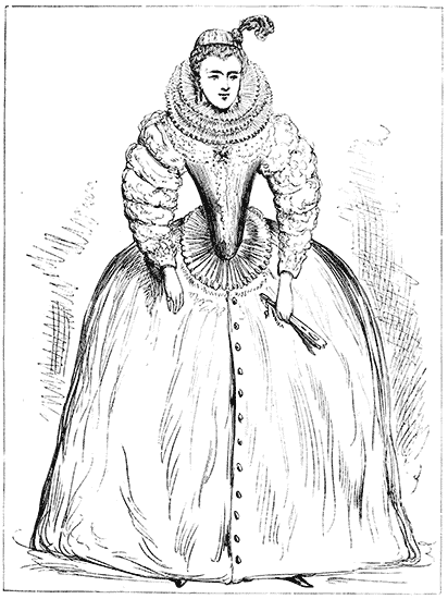 | Bonnets. Headdresses. Costumes in the time of Francis I. Pins in France and England. Masks in France. Puffed Sleeves. Bernaise Dress. Marie Stuart. Long Slender Waists. Henry III. of France "tight-laces." Austrian Joseph prohibits Stays. Catherine de Medici and Elizabeth of England. Severe form of Corset. Lawn Ruffs. Starching. Stuffed Hose. Venice Fashions. Elizabeth's False Hair. Stubs on the Ladies. James I. affects Fashion. Garters and Shoe-roses. Dagger and Rapier | Pages 60 to 91 |