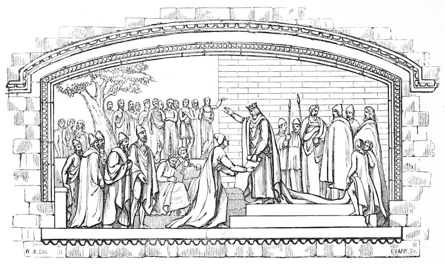 | Bas-Relief of King Alfred instituting the Trial by Jury, on the Southeast of the interior Quadrangle. From a Drawing by Mr. Beattie | Evans. | 28 | |