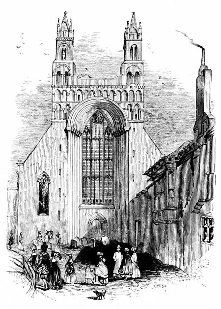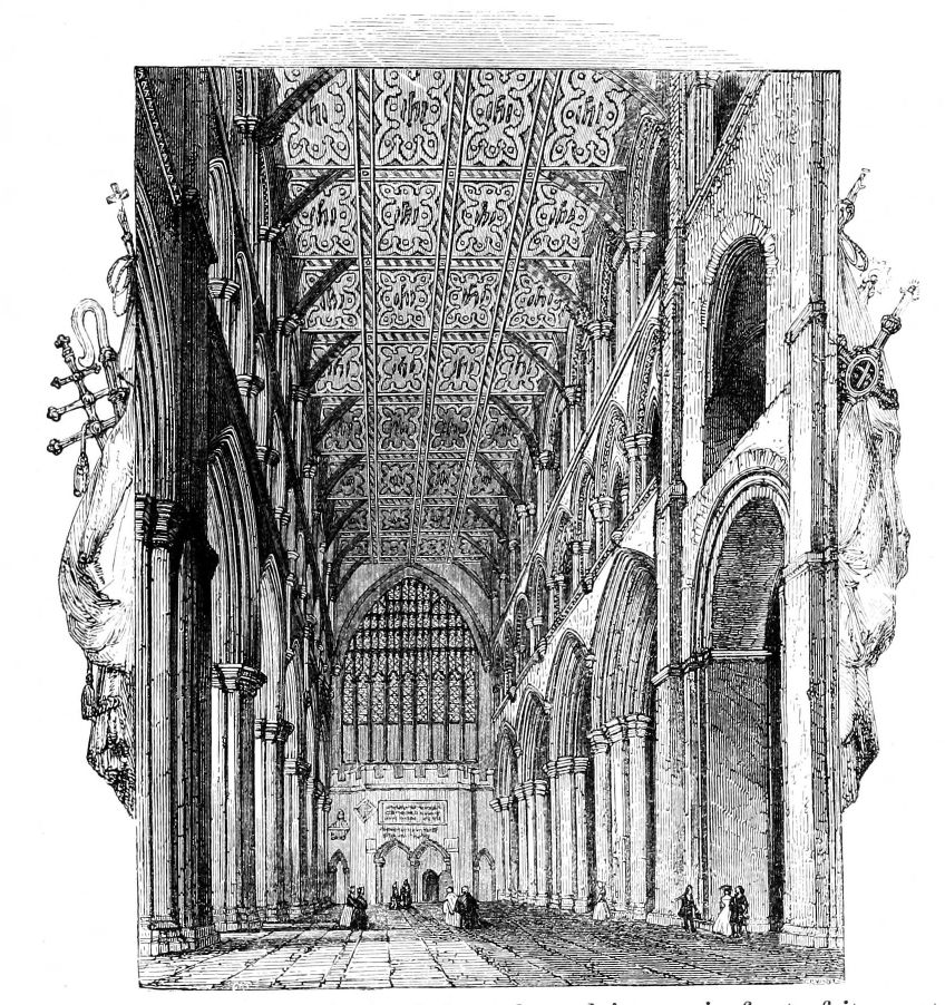 | The Nave of the Abbey Church, Showing the Saxon (or Norman) and Gothic Arches, the Great West Window, &c. | Herman. | Evans. | 83 |