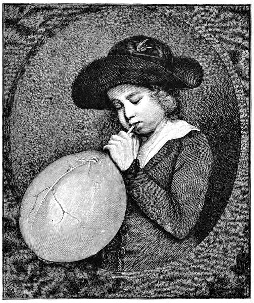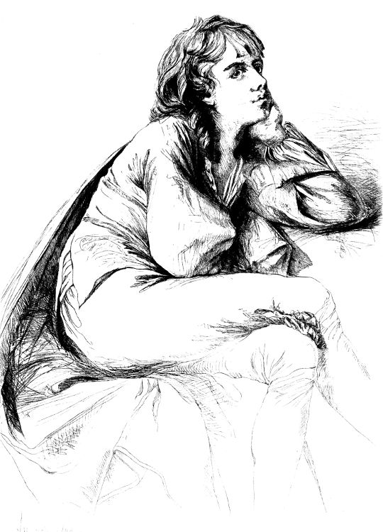 Of the pure charm of his children, some of the illustrations to this volume, especially Mr. Seymour Haden’s painter-like etching of the “Twins,” will speak. Sir Joshua painted children with more spirit and with a livelier eye for fleeting charms of expression; but no artist has painted them more freshly and truly than Wright. Another admirably suggestive[vii] etching by Mr. Haden shows us the elegance of mien and grace of sentiment which he could infuse into his more poetical designs. His versatility was remarkable; but his culture, partly, perhaps, on account of his secluded life, partly from his ill-health, left many of his faculties undeveloped, and his imagination was crossed by a vein of ingenuity which made him delight rather in resolving problems than in indulging fancy. Nevertheless, the “Minstrel” and the “Maria” are as good reflections as exist of that somewhat thin but elegant strain of poetic sentiment which was in vogue in his day. He has in these pictures preserved its gentleness and grace without its falseness. A deeper note of pathos (and pathos unstrained) is touched in the once famous “Dead Soldier.” In his “Death and the Woodman” we find extreme terror depicted with all the force of the most modern realist; and if he did not—(who did?)—prove himself equal to the interpretation of Shakespeare, there is in Boydell’s Gallery no finer head than that of his “Prospero.”
