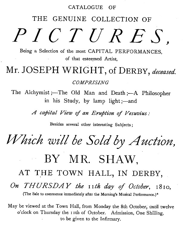 Infirmary Donations.—Messrs. Cade and Chappell, being monies received at the Exhibition at the Town Hall of the late Mr. Wright’s pictures, £7 13s. 0d.—(Derby Mercury, Dec. 4, 1810.)