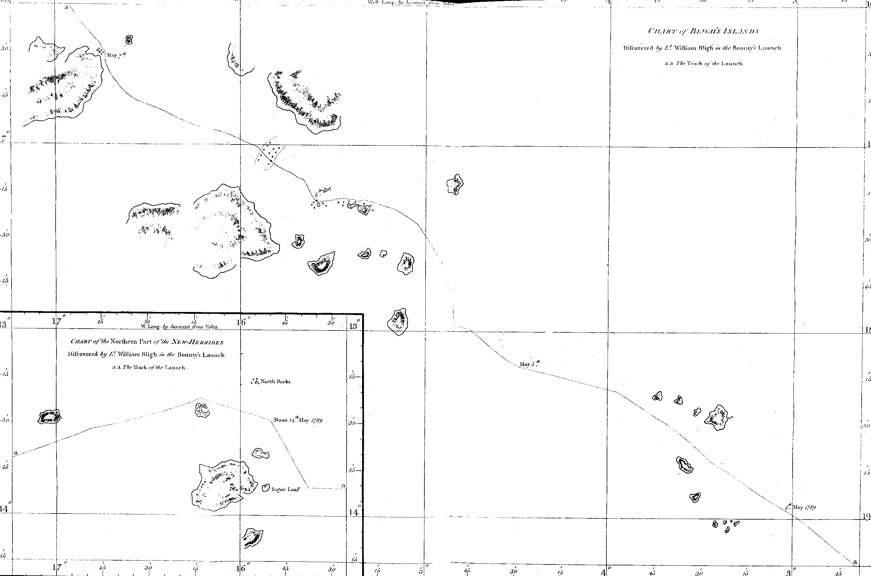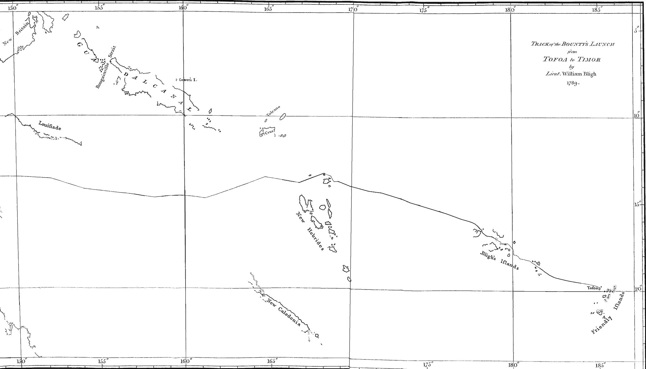 Having little or no wind, we rowed pretty fast towards Tofoa, which bore N E about 10 leagues from us. While the ship was in sight she steered to the W N W, but I considered this only as a feint; for when we were sent away—"Huzza for Otaheite," was frequently heard among the mutineers.
