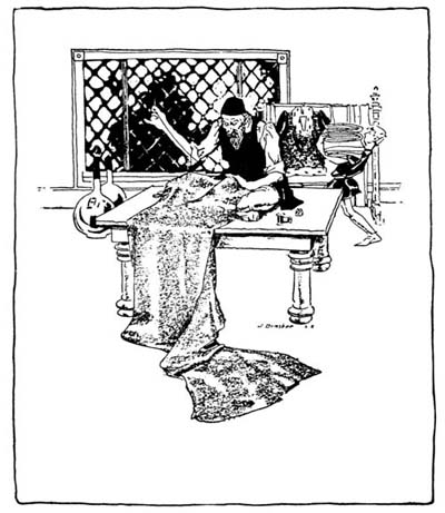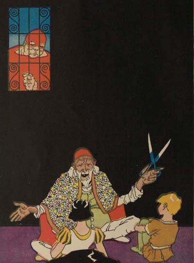 | The Prince receives the magic doublet—The Prince and his daughter set forth for Oogh—A strange encounter at the wayside well—The three blind ballad singers—The blind ballad singer displays the Shears of Sharpness—The strange conduct of the people of Oogh—The mansion in the ruined park—The solitary figure behind the spider’s web—The Prince watches the people’s behavior toward the boy—The man with the ball in the underground alley—The Prince sets out for his encounter with Babadag the Tailor—Babadag the Tailor, Goolk the Spider, and the eight tailors—The three blind ballad singers once more—The magic doublet protects the Prince against the Knitters of Eyebrows and against Goolk the Spider—The Prince’s daughter has beguiled the Shears of Sharpness from the ballad singers—A light flickers in the dark shop—The Prince’s daughter is gone, and the Prince makes a dash for liberty—Babadag the Tailor is conquered by his little son—The governor, being released, beholds the Prince’s daughter—The shearing of the Eyebrow—The skin of the Prince is black—The doom of the city of Oogh—The tailor’s son follows him into the burning city—The boy is found on the sill of his ruined home, alive—The eight tailors stand before them in a row—They meet the three blind ballad singers for the last time | 73 |