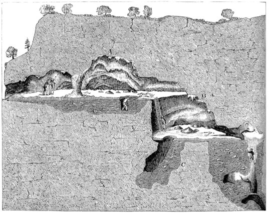 Archæology, also, by the use of strictly inductive methods, has grown from a mere antiquarian speculation into a science; and its students have proved the truth of the three divisions of human progress familiar to the Greek and Roman philosopher, and expressed in the pages of Hesiod and Lucretius—the Ages of Stone, Bronze and Iron. The subdivision of the first of these into the older, or palæolithic, and newer, or neolithic, by Sir John Lubbock, is the only refinement which has been made in this classification. Sir Charles Lyell has discussed the various problems offered by the general consideration of the first of these divisions in “The Antiquity of Man;” while Sir John Lubbock, in “Prehistoric Man,” has followed Dr. Keller and others in working out the past history of mankind by a comparison of the habitations, tombs, implements and weapons found in Europe, with those of modern savages. This work is intended to be to a considerable extent supplementary to theirs,—to treat of the formation of caves, and of the light thrown by their contents on the sojourn of man in Europe, on the wild animals, and on the changes in climate and geography.