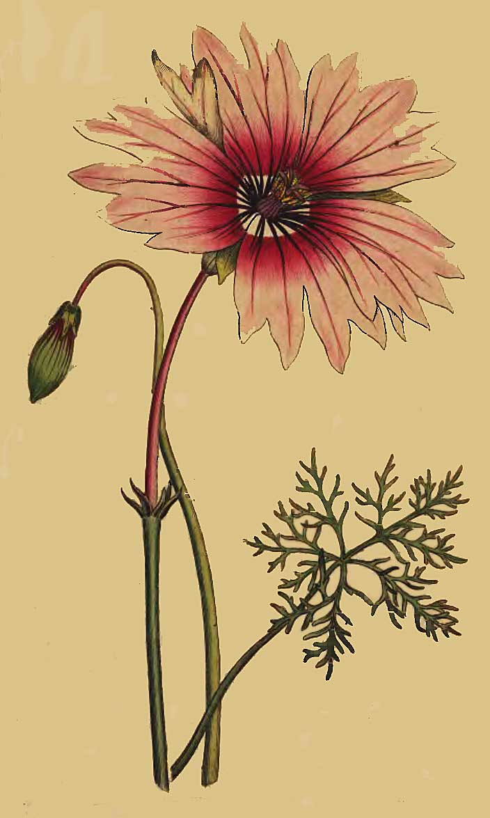The genus of which this charming plant is the most distinguished species, has been named in honour of Lady Anne Monson. The whole family are natives of the Cape, and in their habit and fructification bear great affinity to the Geranium. The present species was introduced into this country in 1774, by Mr. Masson.