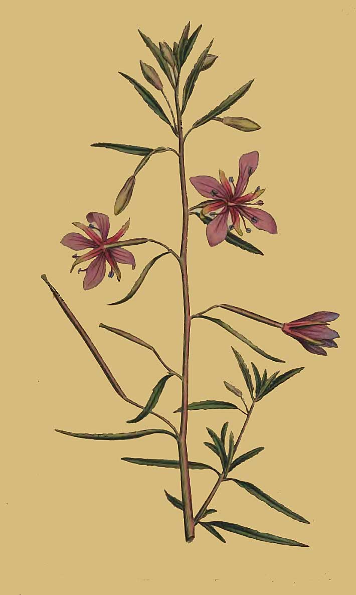 EPILOBIUM angustifolium, foliis sparsis linearibus obsolete denticulatis aveniis, petalis æqualibus integerrimis, Ait. Hort. Kew. 2. p. 5.