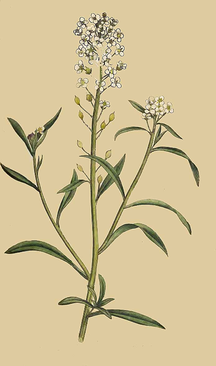 IBERIS umbellata herbacea, foliis lanceolatis, acuminatis, inferioribus serratis; superioribus integerrimis. Linn. Syst. Veg. ed. 14. Murr. p. 589. Sp. Pl. p. 906.
