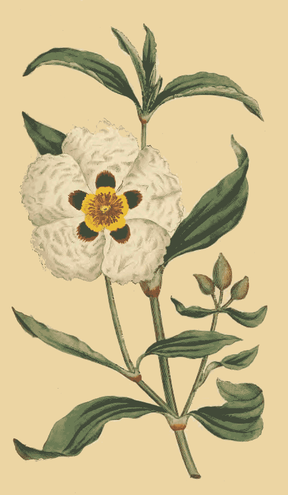 Is not the plant from whence the Ladanum of the shops is produced, though affording in warmer countries than ours a similar gum, hence its name of ladanifera is not strictly proper.[Pg 11][Pg 10][Pg 9]