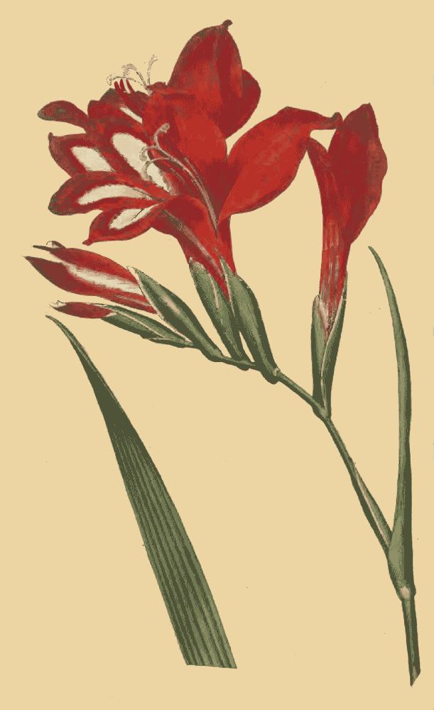 It flowers very early in the spring, from February to May, and is usually propagated by offsets, which its bulbs produce in tolerable plenty. It requires a treatment similar to the Ixias and other Cape bulbs. Our figure was drawn from a plant which flowered this spring, in the possession of R. Forster, Esq. of Turnham-Green.[Pg 80]