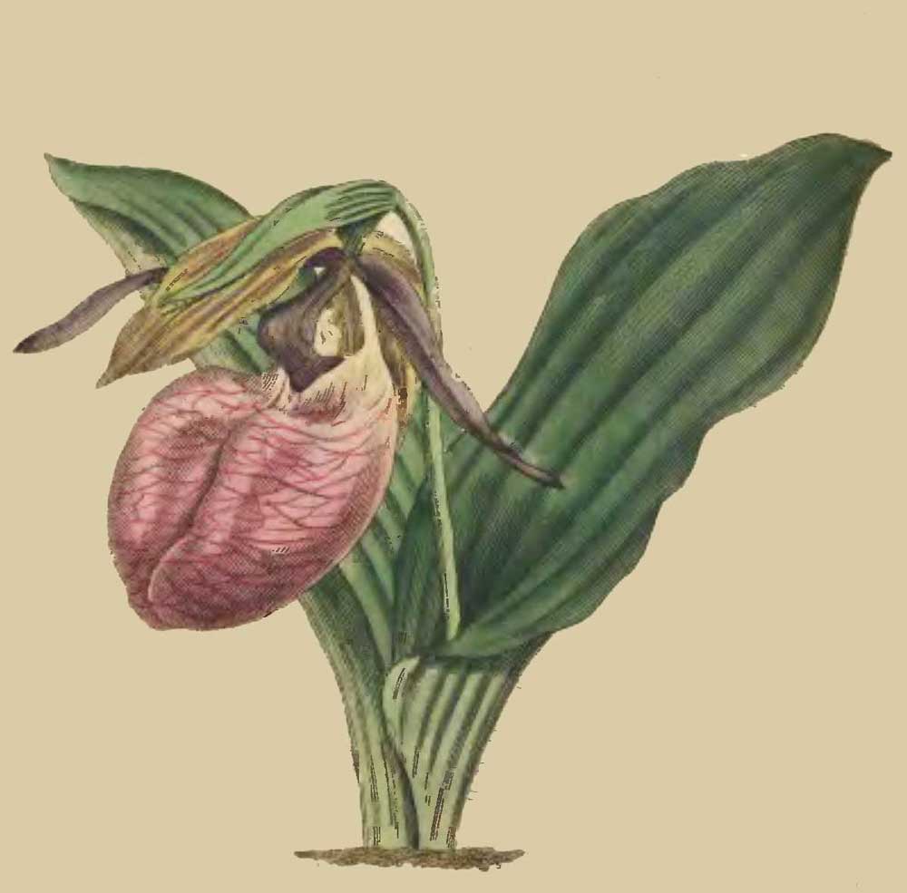 CYPRIPEDIUM spectabile. Corolla labio superiore ovali basi retuso concavo subtus carina obtusa, inferiore petalis longiore grosso. Salisb. Trans. Linn. Soc. V. 1. p. 78.