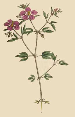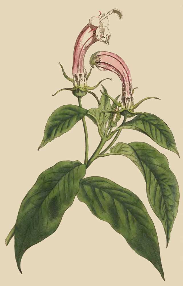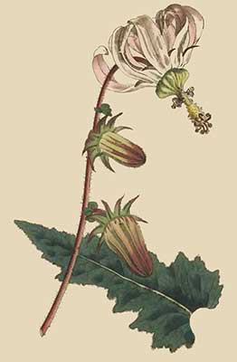 Last summer 1792, in the month of July, we had the pleasure to see a fine plant of this sort, fully blown, in the collection of Messrs. Grimwood and Co. Kensington; though in a small pot, it grew nearly to the height of six feet, was branched almost to the bottom, and loaded with a profusion of blossoms, such as are represented on the plate, and which bore some distant resemblance to those of a passion-flower.