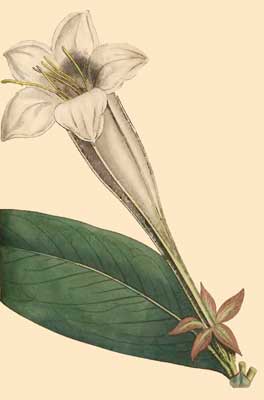 It forms a very beautiful stove plant, not of difficult growth, and readily disposed to flower; we have seen blowing plants of it little more than a foot high; its blossoms are not only uncommonly large, shewy, and curious in their structure, but fragrant also, and very much so when dried.