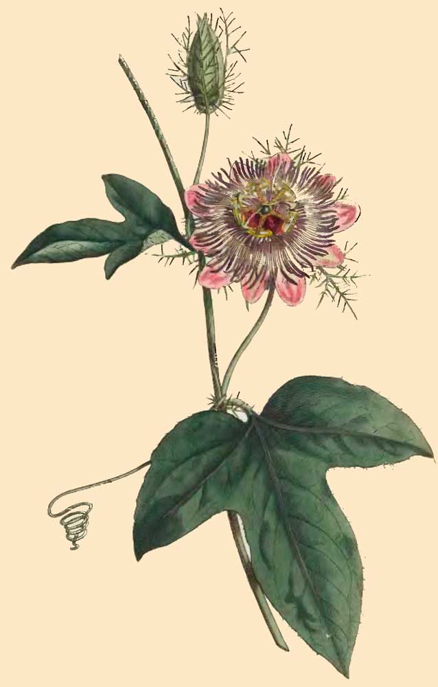 This Passion-Flower is described in the Hort. Kew. as a new one, under the name of ciliata, introduced by Mrs. Norman, from the West-Indies, in 1783: we saw it during the latter part of the last Summer, with great profusion of flowers, in several collections, more particularly in that of Mr. Vere, Kensington-Gore, from whence our figure and description were taken.